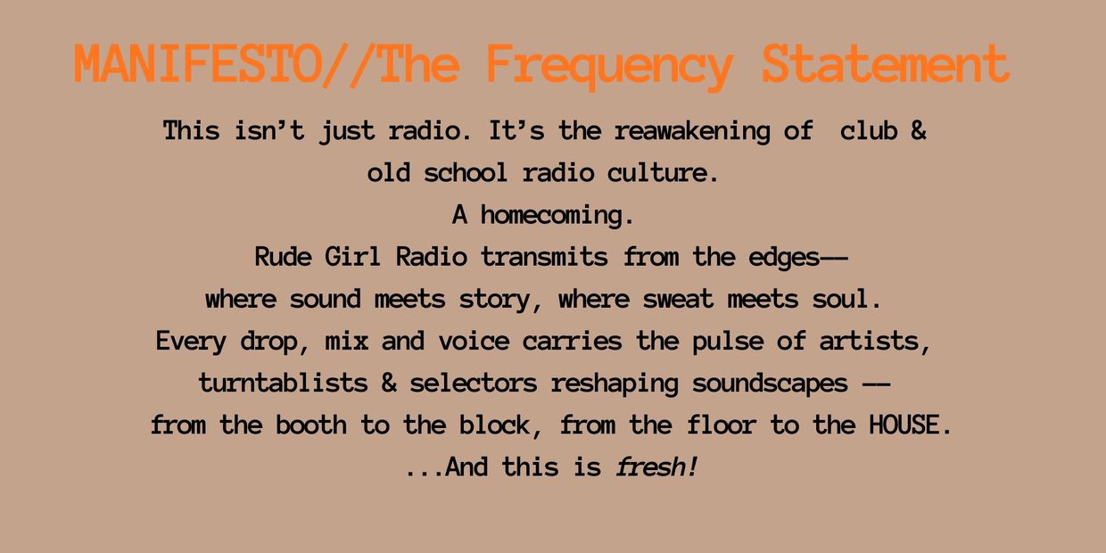 Unfiltered. Unsought. Unbossed. Rude Girl Radio--broadcast arm of Rude Girl Prods.--now beaming from the edges of the map into the heart of the culture.